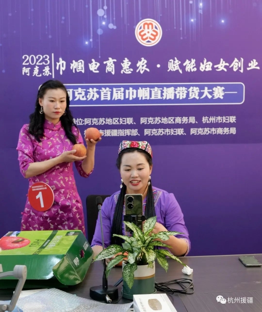 当天,阿克苏地区妇联、商务局,杭州市妇联、杭州市援疆指挥部,阿克苏市妇联、商务局联合举办的“巾帼电商惠农 赋能妇女创业”2023年阿克苏首届巾帼直播带货大赛在阿克苏招商服务中心成功举办。 此次比赛主要面向返乡就业女大学生、农村女性电商、本土网红等,通过大赛激发女性创业就业活力。比赛分为初赛和决赛,采用微信视频号、抖音、快手等平台进行现场直播,直播时间为20分钟,通过直播间人流量、直播话术和对农村合作社、农产品销售带动作用等6个维度进行综合评分,共设立一等奖1名、二等奖2名、三等奖3名、鼓励奖6名。