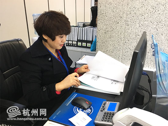 窗口工作人员在审核材料