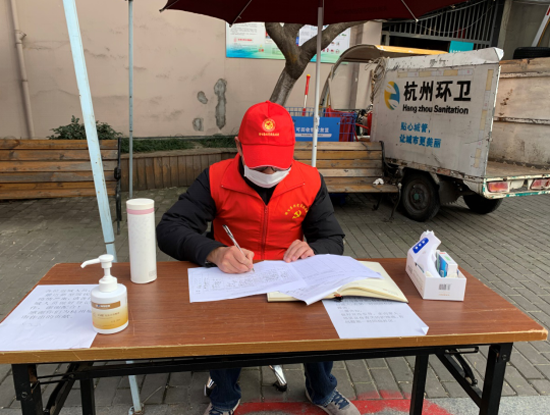 近日,随着外来返杭人员的日益增加,社区疫情防控任务愈加艰巨。在下城区天水街道党建联盟的号召下,杭州大厦科室一支部、物管改建一支部、物管改建三支部选派党员志愿者到环北社区参加外来返城人员排查工作。1.31-2.2,从早上9点到下午5点,党员志愿者与社区工作人员一起驻守环北社区入口,为外来返杭人员测量体温,登记信息,筑牢社区安全的第一道防线。