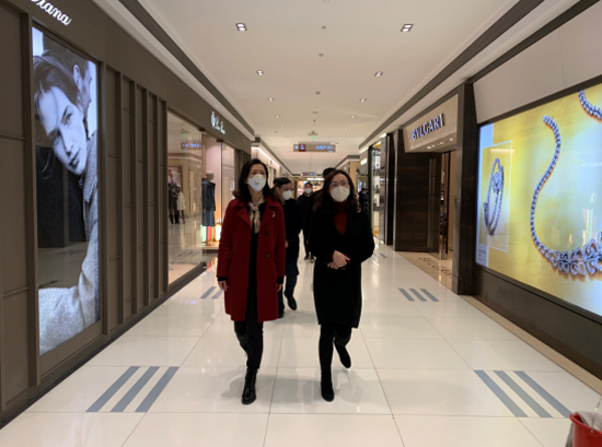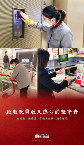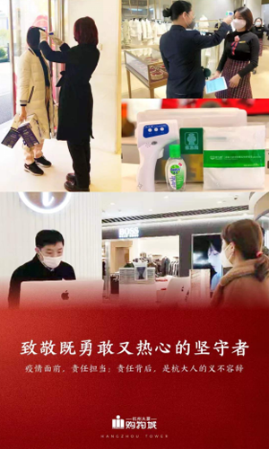 为了防控疫情,商场主动调整营业时间(每天13:00-17:00),严格执行2小时消毒一次的工作原则,加强新风安排,保证场内空气流通、常新;为每一位员工测量体温、配发口罩,防护工作不曾有一丝松懈;劝导每一位进店客人带上口罩,测量体温,让大家安心购物。同时,严格执行各项申报、查验工作,实时掌握每一位员工(含联营员工)的出行和健康状况。
