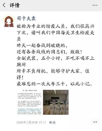 厚厚的防护服能隔绝病毒,却不会隔绝一线关员的温暖和关怀。
