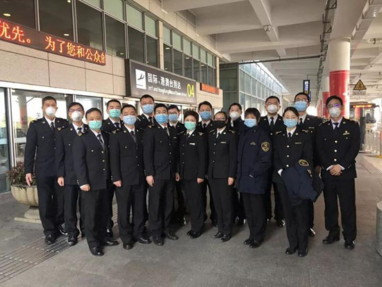 为坚决遏制疫情扩散,充实一线防控力量,钱江海关发布《防控疫情文明倡议》,全关上下积极动员,在最短时间内完成8名卫检专业和动检专业备勤人员及106名支援机场志愿者的招募,已安排61人次奔赴抗击新型冠状病毒疫情防控一线,其中三名卫检人员常驻机场,在入境航班、社区疫情防控等新冠病毒疫情现场排查处置工作中发挥积极作用。