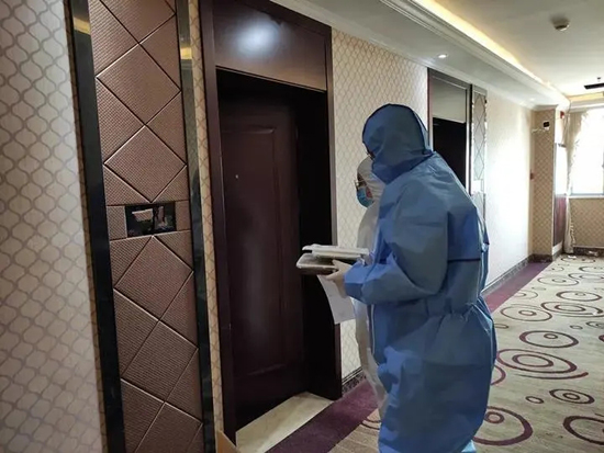 “宾馆里有一名密切接触者,不愿影响家人,独自住在宾馆隔离。”接到排查人员电话后,从联系医务人员、体温检测、告知医学观察,到宾馆消毒、宾馆内人员居家隔离,袁国情镇定地按照流程处理着突发情况。