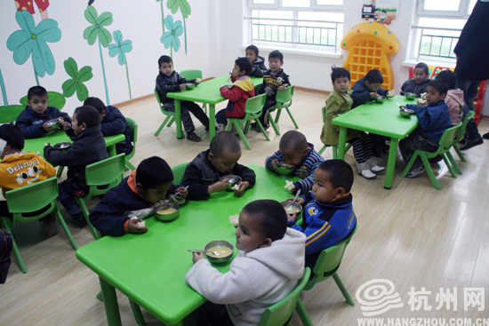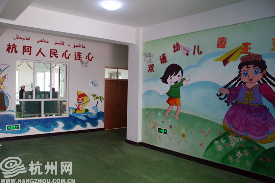 |  幼儿园的设施在杭州来说都算好的  孩子们正在吃早餐  幼儿园内干净、漂亮     杭州网讯 自2010年6月杭州对口支援新疆阿克苏市以来,阿克苏这座南疆的美丽城市,变化不可谓不大。据杭州市对口支援阿克苏市指挥部指挥长谢建华介绍,这次支援的总目标,是让阿克苏在2020年与全国一起实现小康。     这其中,当务之急是以改善民生为重点,解决当地群众教育、住房、医疗、养老等方面的迫切困难。2010年,杭州共确定了民生类重点项目9个,总投资1.54亿元。     去年这个时候我们来到阿克苏,这些民生项目只是埋下了种子,还看不到果实。短短一年时间,记者再次来到阿克苏时,发现它们已经给阿克苏人带来了惊喜。 可以PK杭州的“双语”幼儿园     阿克苏栏杆“双语”幼儿园内,年轻的吉扎努尔和其他几位幼师一起正在“监督”着孩子们吃早饭。小家伙们坐在绿色的小桌子前,4、5个人一桌,吃的津津有味。     吉扎努尔带的班有21个孩子,只有2个汉族学生。能吸引这么多维族孩子到这来,双语教学是很重要一方面。“双语”指的是汉语和维语。吉扎努尔是个维族美女,但也说一口流利的汉语,她说园内教学都是先用汉语再用维语,便于孩子从小就学会这两种语言。     除了双语教学外,园内的设施也是亮点。记者在教室外遇到了阿曼尼莎汗和她3岁的女儿艾利扎提,艾利扎提才上小班,正在用还不太熟练的汉语哼唱着“两只小白兔”。     阿曼尼莎汗说,女儿刚刚来不久,之前在市幼儿园上了两个月,觉得不适应,而这里都是新的地板、墙壁,干干净净,环境很好,自己和女儿都很满意。杭州来任职的阿克苏市教育局局长罗勉说,即便放到杭州,栏杆“双语”幼儿园设施都算是一流的。     栏杆“双语”幼儿园是2010年杭州首批对口援建阿克苏的试点项目之一,总投资800万元,今年9月刚刚正式开园。幼儿园园长包敏告诉记者,目前园内一共3个班,72个孩子,其中维族孩子占到大多数。老师共17名,其中9个民族老师8个汉族老师。     虽然来的都说好,但仅仅开园两个月的栏杆“双语”幼儿园还远没发挥它的全部功能。地处市中心位置,占地约10.2亩的双语幼儿园最多可容纳20个班,600名学生,另外还配有专业的幼儿教室、教学辅助用房、音体美室、食堂等。     包敏说,以前阿克苏只有一所幼儿园,孩子入园难是个大问题,等双语幼儿园名头响了,来的孩子多了,可以大大缓解阿克苏的孩子们上幼儿园的问题。    老年福利院已经完工  屋内宽敞明亮、设施齐全  高炳源来看自己的新家 85岁老高的新家     85岁的高炳源6岁时从天津来到新疆,年轻时在医院从事财务工作,现在成了一名孤寡老人,用他自己的话说,自己手不动,嘴里就没吃的。对于老高来说,能否找到个舒服的养老院,是个非常关键的问题。     11月1日这天,老高来看了看他的“新家”。阿克苏市社会福利中心位于阿克苏市依干其乡古勒巴格村多浪小镇北侧,占地28.7亩,总建筑面积19000平方米,也是杭州2010年援建重点项目之一。     福利中心包括老年社会福利院、残疾人康复中心、儿童福利院3部分,共700张床位,目前已接近完工。     阿克苏市民政局局长努尔丁告诉记者,原来的阿克苏福利院只有72床位,还是综合使用。现在新的福利中心不仅地方大了,床位多了,条件也明显有了提升,不仅都是无障碍设计,还设有民汉餐厅、电梯、独立卫生间、呼叫系统、娱乐室、健身房等多种设施。     这个月20日,老高就将住进福利中心里的“新家”,今天他迫不及待,先来瞅一瞅。记者看到,老年福利院的走廊里,处处都设有方便老年人走路的扶手。屋内更是宽敞明亮,每个房间大约有24个平方,1-2张床,并配有一个又大又干净的阳台,在床头,还都设置着床头专用呼叫按钮。     努尔丁说,福利中心不仅内部设施完善,还注重外部的环境,建成后可以称之为一个花园式福利中心。老高看了看自己的新家后,显得非常满意,“我之前住了10年的福利院,现在这里的条件可好多了。”     除了“双语”幼儿园、社会福利中心外,阿温西路保障性住房、杭州大道、社区阵地组织建设、农业高效节水等项目也已经全面完成。2010年,杭州对口支援阿克苏市的9个项目中,7个项目已经交付使用,给阿克苏市人带来了看得见的实惠。