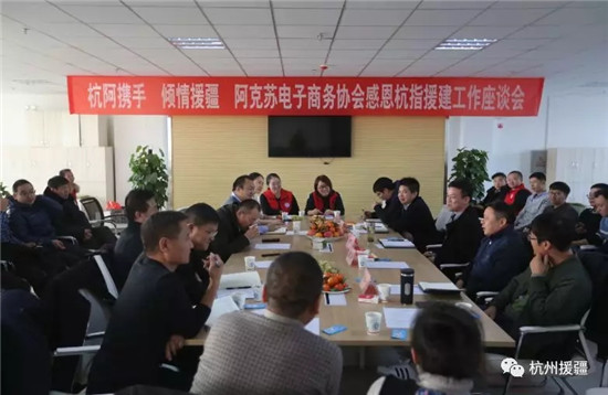 12月3日,杭州市援疆指挥部与阿克苏市电子商务协会举行座谈会。杭州市援疆指挥部指挥长杨国正,副指挥长周华与40多位阿克苏市电子商务协会会员共同回顾阿克苏市电商产业发展历程,展望阿克苏市电商产业美好明天。