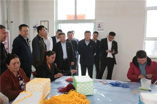 在衢州团结新村观看当地百姓手工纺织作业 省援疆指挥部相关办组负责人、衢州市援疆指挥部指挥长李昱一同进行了调研。 |
