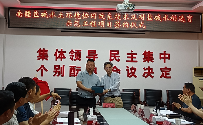6月10日上午,南疆盐碱水土环境协同改良关键技术及耐盐碱水稻选育种植示范项目签约仪式在兵团第一师二团举行。仪式上,兵团第一师二团党委副书记、团长安刚,浙江大学王建江教授,兵团第一师二团党委常委、副团长、杭州市援疆指挥部机关纪委副书记钟一民为对“南疆盐碱水土换金环境协同改良技术及耐盐碱水稻选与示范工程”进行揭牌,浙江大学建工学院水利工程系与新疆美丽乡村生态农业科技中心完成技术服务签约,新疆美丽乡村生态农业科技中心与兵团第一师二团完成战略合作协议签约。 安刚介绍,二团是兵团水稻种植的发源地,每年水稻种植近三万亩,培育的天山雪米曾获国家金奖,享誉全国。他说,希望以此次考察和签约为契机,浙江大学专家组能在盐碱水土协同改良、耐盐碱水稻技术上给予大力支持,破解制约二团水稻产业发展的瓶颈。二团会将成立专门项目小组,为改良技术和海水稻选育做好服务保障和推广支持。通过此次考察,双方一致认为在原有自然资源的基础上,结合现代农业技术及相关前沿科学技术,从种子选育、水土治理、种植技术等方面进行合作。 在阿克苏期间,专家组还与阿克苏地区国资委有关负责人进行座谈交流,实地踏看塔里木大学水利建工学院农业实验基地,赴阿克苏艾西曼湖与阿克苏水务环保集团沟通生态林建设项目,与阿克苏市三江养殖基地探讨高效生态土壤改良剂与营养土肥研发与制备项目合作事项。 |