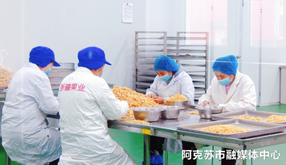 阿克苏浙疆果业有限公司由杭州援疆牵线引进,是一家致力于核桃标准化生产的农产品精深加工企业,该公司构建的“公司+合作社+农户”模式,解决了当地果农的核桃销售难题,直接或间接带动1640多家农户增收,形成了核桃“初加工在乡镇、深加工在园区”的发展格局。 “随着健康膳食概念的涌现,核桃油的营养价值逐渐得到公众重视。该项目围绕核桃精深加工关键技术瓶颈,拟突破核桃调和油安全生产加工新技术,核桃油甘油二酯新产品加工技术、高品质核桃蛋白和植物乳、核桃酱等多元化核桃蛋白精深加工产品研发技术和核桃抗氧化肽和益智肽创制技术,并进行集成、熟化和示范,形成工业化产能。通过项目实施全力推动林果产业提质增效,打造产业发展‘新’引擎,为乡村产业兴旺、农民富裕富足作出积极贡献。”阿克苏浙疆果业有限公司总经理赵文革说。