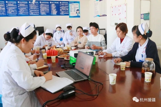 杭州市政府副秘书长、杭州市援疆指挥部指挥长黄建正,党委副书记、副指挥长莫锋,阿克苏市委常委、宣传部部长依米然·白和提,阿克苏市人民医院党委书记高学忠,阿克苏市卫健委党委书记崔萍等陪同专家组先后前往消化内镜室、超声科、泌尿外科、骨科、呼吸与危重症医学科、消化内科等科室进行实地参观,并详细了解杭州“组团式”医疗援疆工作开展以来,医院在学科建设、技术提升、人才培养和项目建设方面取得的成效。 之后,杭州市中医院专家组在“杭州市甲状腺乳腺外科名医工作站”坐诊,当天共接诊甲状腺患者31人、乳腺患者24人,预约手术7人,并为住院部医务人员开展了护理知识专场培训。