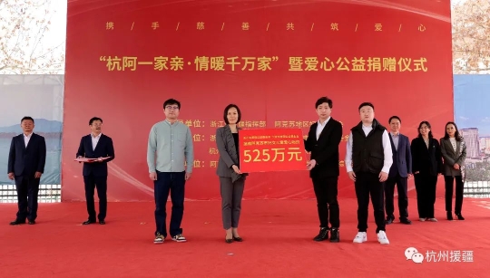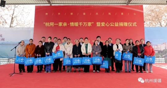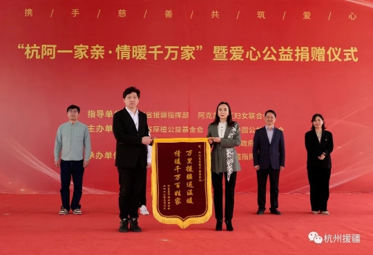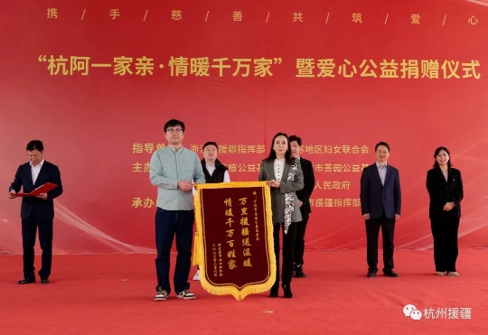 3月6日,“杭阿一家亲·情暖千万家”爱心公益捐赠活动在千鹤妇女精神阿克苏实践基地举行。浙江省厚植公益基金会、宁波市善园公益基金会向阿克苏市妇女儿童捐赠了总计价值525万元的爱心物资,涵盖了医疗、体育、服装、生活用品等方面。