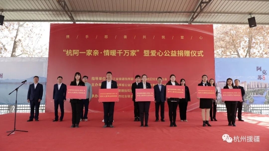 杭州市政府副秘书长、杭州市援疆指挥部指挥长黄建正表示,公益基金会帮扶是勤劳双手创造美好生活的志气和能力,对口援疆帮扶是改善民生、增加动力、凝聚人心、增进团结,公益帮扶是全面援疆、精准援疆、长期援疆的重要内容。厚植公益基金会一行热心参与阿克苏市的公益帮扶,是杭州援疆继多浪公益帮扶、“母亲微笑行动”唇腭裂公益治疗开展同时,又一个响亮的公益帮扶品牌,是对口援疆工作新的生力军,既拓展了公益帮扶的参与面,又扩大了受益面,同时也让对口援疆公益帮扶更加细致入微,更为直抵人心,让更多群众能够更加直接的感受到党的关怀和祖国大家庭的温暖。此次厚植公益基金会的捐赠是杭州援疆历年来公益帮扶资金数量最大、受益面最广的公益帮扶项目,表达着“杭阿一家亲·同心创美好”的深情厚谊,必定为阿克苏市巩固脱贫攻坚,推进乡村振兴注入新的力量;必定为中国式现代化的新疆实践注入新的力量。希望阿克苏市乡镇街道珍惜这份关心支持,把帮扶落细落实,要紧密结合当前阿克苏市正在开展的“转作风、促服务”专项行动,把好事做实,激发各族群众自信自强,感党恩、听党话、跟党走,携手同圆中国梦。公益帮扶传递着大爱,是让守望相助、乐善好施的中华传统美德浸润人心;公益帮扶弘扬着大爱,是让同心同德、同舟共济的中华民族共同体意识更加牢固。在这充满希望的春天里,让我们一起传递大爱,弘扬大爱,扎实地做好温暖人心的工作、凝聚人心的工作,必定会迎来丰收的喜悦。 阿克苏市委常委、宣传部部长依米然·白和提表示,此次在杭州市援疆指挥部的积极努力和热心帮助下,浙江省厚植公益基金会、宁波市善园公益基金会不辞辛劳、穿越万里为阿克苏市各族妇女儿童送来爱心福利,传递浙江人民的热情。我们将科学统筹、合理分配,各级妇联要在第一时间把所有爱心物资送到生活确有困难、残疾、重病等生活困境的妇女儿童家中手中,把这份厚爱传递到千家万户。 浙江省厚植公益基金会理事陆至伟表示,浙江省厚植公益基金会自创立以来,始终以“善动于天,厚植于心”为宗旨,将善意深根于心,将爱心倾注于公益事业,积极履行社会责任,并通过互联网和数字化技术运用,在助困、助老、助残等系列公益慈善活动中发挥作用。基金会将以此次活动为契机,带动社会各界人士共同参与,让关爱之情持续融入生活点滴,让越来越多的人能够加入到公益大家庭,让美好的品德在世间传递,共同营造出良好的社会公益事业发展环境。同时,将大力借助各大互联网平台力量,将社会公益工作与阿克苏文明建设有效结合,全力促进杭阿两地交流和公益事业发展,为杭阿两地公益事业高质量发展贡献智慧和力量。