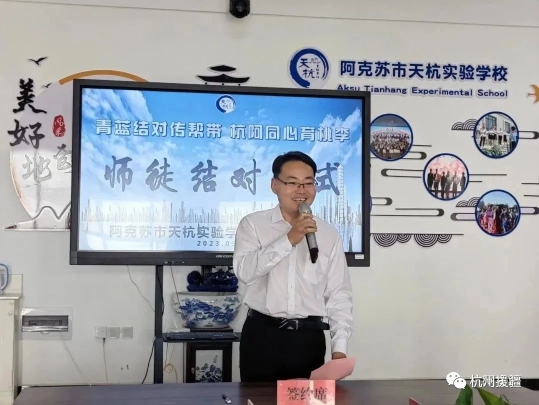 本次“青蓝结对工程”由援教天杭实验学校的14位杭州援疆老师,结对徒弟26人,希望通过传帮带活动进一步提升教师的素养,提高教育教学、教研科研能力。