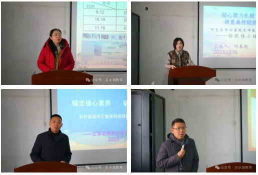 随后,各学科工作室领衔人系统汇报了半年来的工作脉络、师培成果与后续计划。在杭州名誉导师线上线下同步指导下,工作室通过专题讲座、送教下乡、常态集体备课与示范课打磨等方式,持续推动教学提升。学员们分享成长感悟,表达了对工作室平台的珍惜与扎根乡村课堂的决心。