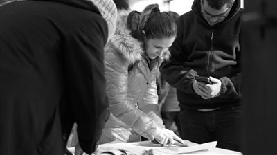 此时,一队跟随老师出来看展的幼儿园大班小朋友,扶着快和自己差不多高的桌子,目不转睛地看着梁琦手中的画。而外国朋友们的兴奋和专注劲儿,一点不比他们低。