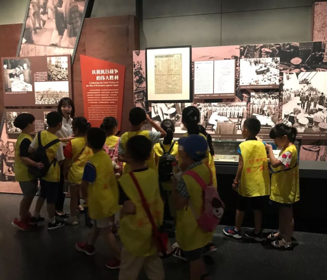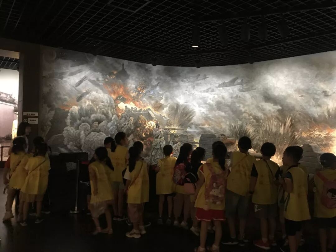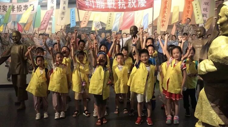 今天我跟好朋友坐小黄车一起参加第二课堂的活动,还有其他很多小朋友到受降纪念馆去 。