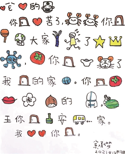 “第一次做核酸检测对孩子们的触动很大,幼儿园鼓励孩子们以写信的方式,把感受写下来。”“2556”说,孩子们都很认真,不会写的字就画出来。