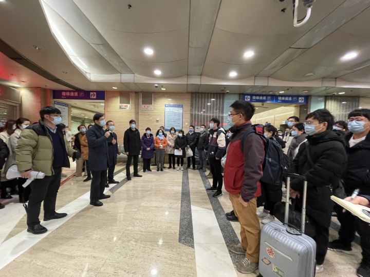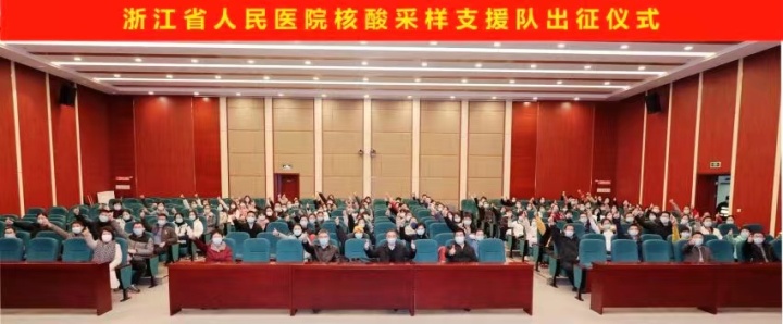 18日凌晨,浙江省人民医院接到通知,根据省卫健委统一部署支援上虞。100位核酸采样医务人员接到通知后毫不犹豫地带上行李奔赴医院。3小时内,人员集合完毕,医院党委书记洪朝阳、院长葛明华到现场送行。