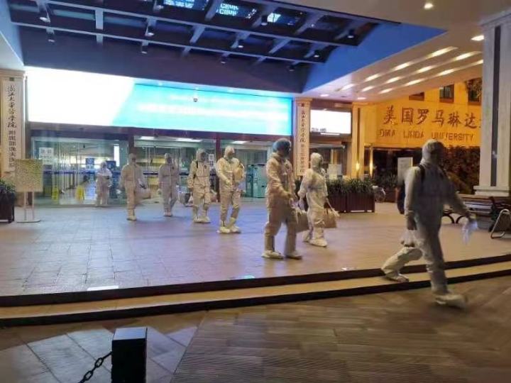 医院临工、后勤等部分紧急调集了包括防护服、N95口罩,医用隔离面罩、消杀物资、成人尿不湿等物资50多箱。