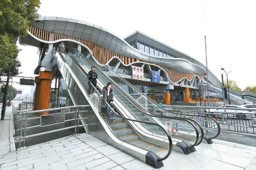去年夏天开始,在江干区住建局的牵头下,王家井人行天桥开始施工。这座天桥投资2300万元,高6.5米,跨48.1米,桥面宽7米,采用钢桁架结构,标配自动扶梯、垂直电梯,整体造型用流畅曲线与火车东站外立面交相呼应,寓意“钱江浪潮奔腾不息”。
