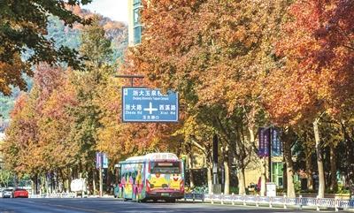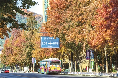 在西湖景区不远处,藏着一条鲜为人知的绝美“枫景大道”——求是路。道路两侧的行道树以枫香为主,整条路五彩斑斓。