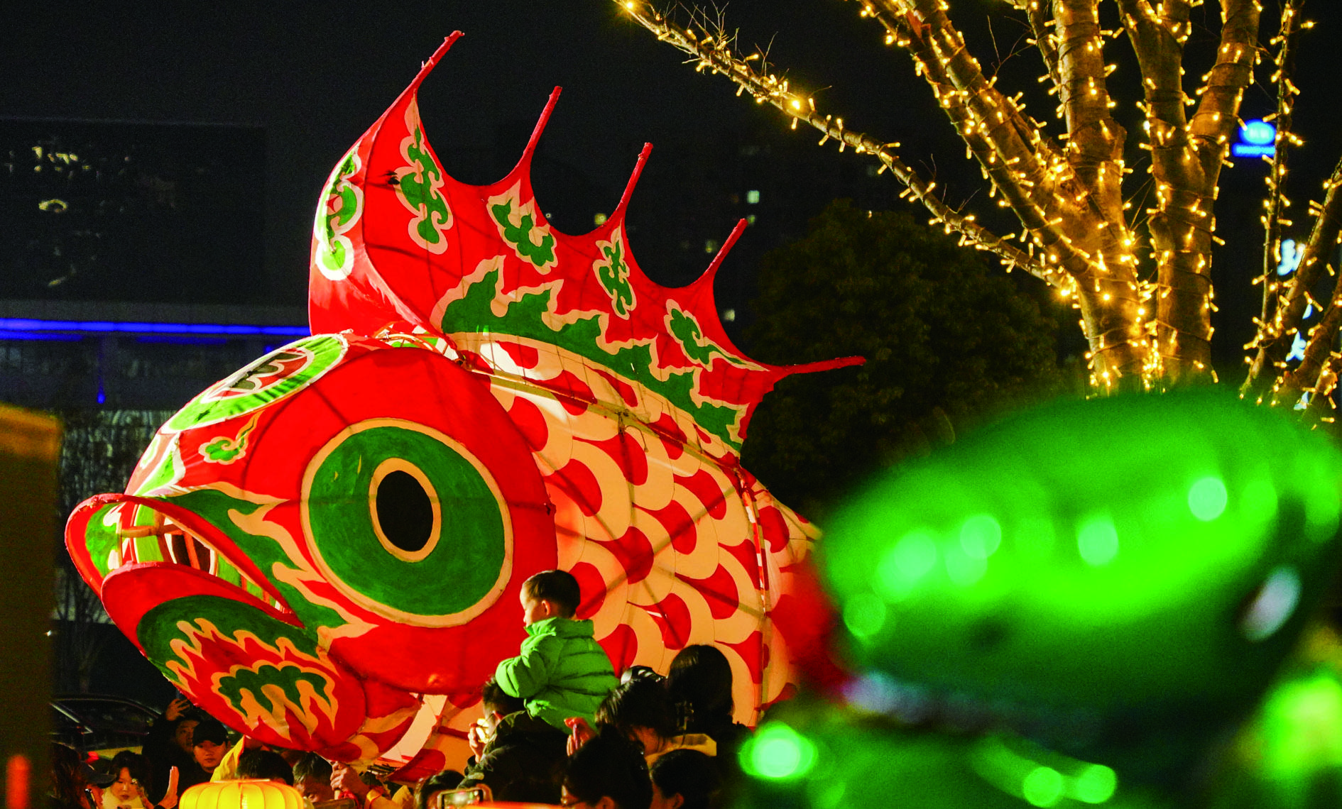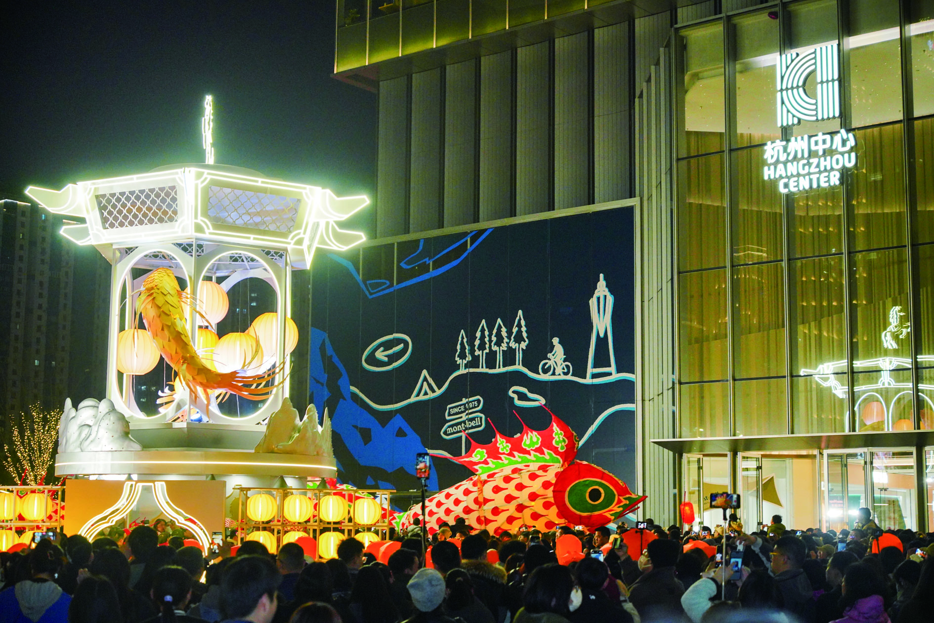 昨晚,杭州中心户外广场上,锣鼓声声,光影交错,源自安徽徽州、拥有600年历史的“汪满田鱼灯”非遗传承团队,携其标志性的非遗鱼灯首次亮相巡游,以其独特的龙头鱼身造型,于流光溢彩中为人们带来一场喜庆祥瑞的灯火盛宴。