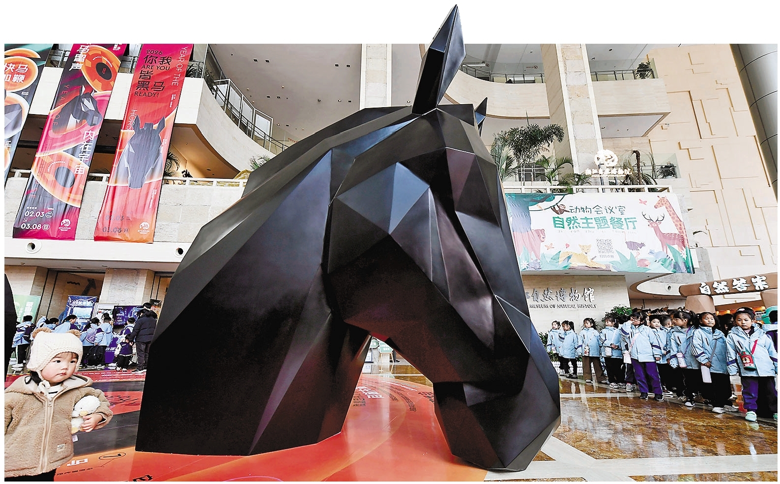 2月3日,《2026你我皆黑马》生肖贺岁展在浙江自然博物院的杭州馆和安吉馆同步开启。本次展览设黑马留声、骏马不息、骏马纪事三大板块,以马匹标本、黑马雕塑及互动装置等相结合的创新展陈形式,清晰梳理马的生物演化历程、呈现马对人类文明的深远影响、解读中华马文化的丰富内涵,让观众沉浸式感受生肖马的吉祥寓意,在自然科普与人文赏鉴中迎接马年新春。据悉,2026年春节期间,全省博物馆将推出244个“过大年”系列展览,举办2185场年俗活动。全省非国有博物馆与千余家乡村博物馆同步推出马年主题特色展陈与在地活动,丰富群众新春文化生活。