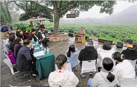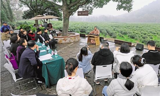 3月17日,杭州西湖景区双峰村茶园边,西湖街道的文艺骨干们轮番演奏古琴、笛子、萨克斯名曲,为即将开采的西湖龙井茶奏响春天序曲。当日,西湖街道文联音乐社团成立并招募辖区内文艺骨干及热爱音乐的居民。