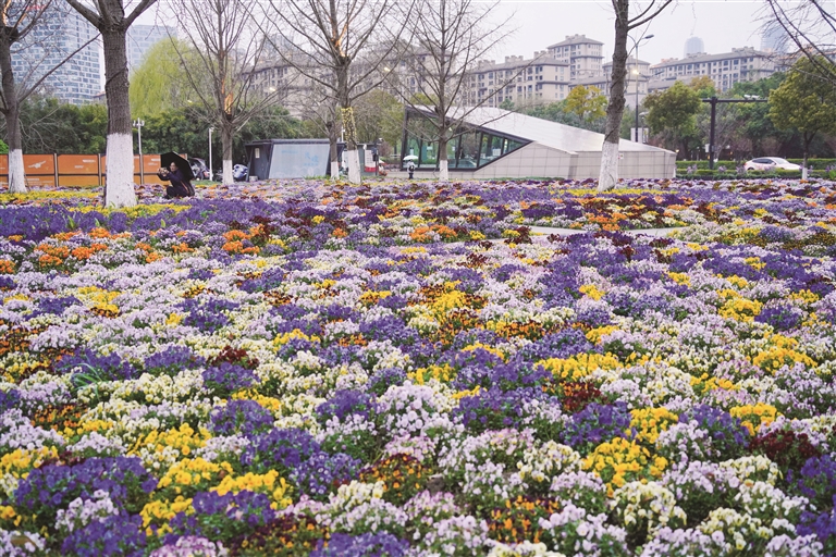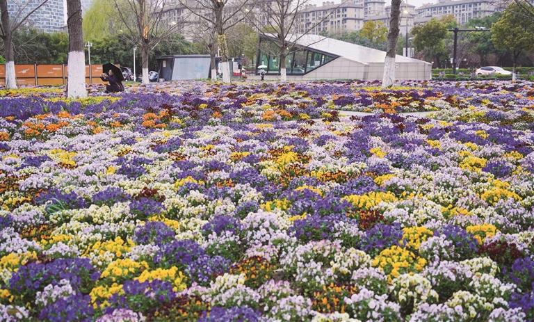 这几天,在杭州地铁5号线良睦路站C口,多彩的三色堇正热烈绽放,紫白黄红交织,宛如打翻的莫奈调色盘,美丽动人。这片出站即遇的花海,仿佛一份惊喜彩蛋,引得市民游客频频驻足观赏,邂逅春日浪漫。