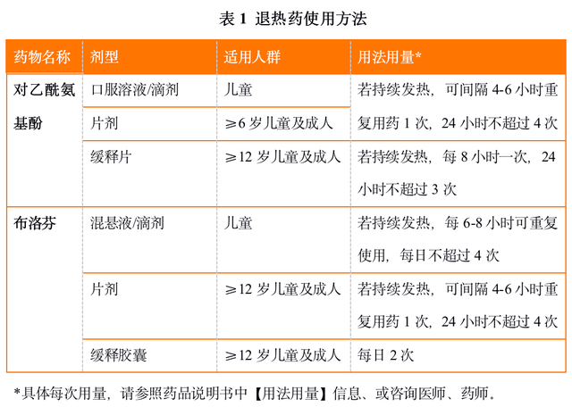 对于一般无基础疾病的人群,较为安全的退热药包括对乙酰氨基酚和布洛芬,选择其中1种即可,可参考下表信息。