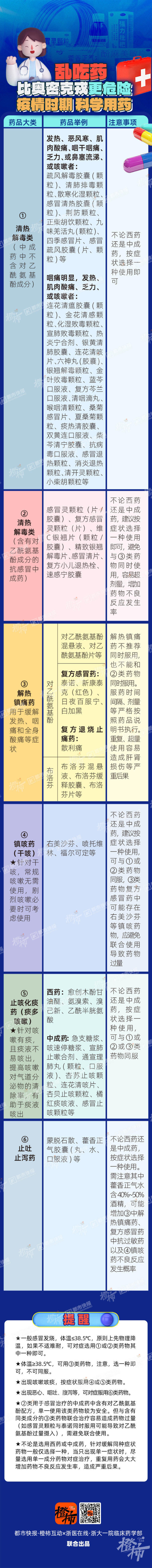 为此,都市快报联合浙大一院临床药学部,为大家制作一张简明易懂的药品使用图,大家可以一边看图,一边对照症状及家里的药箱,合理科学用药。