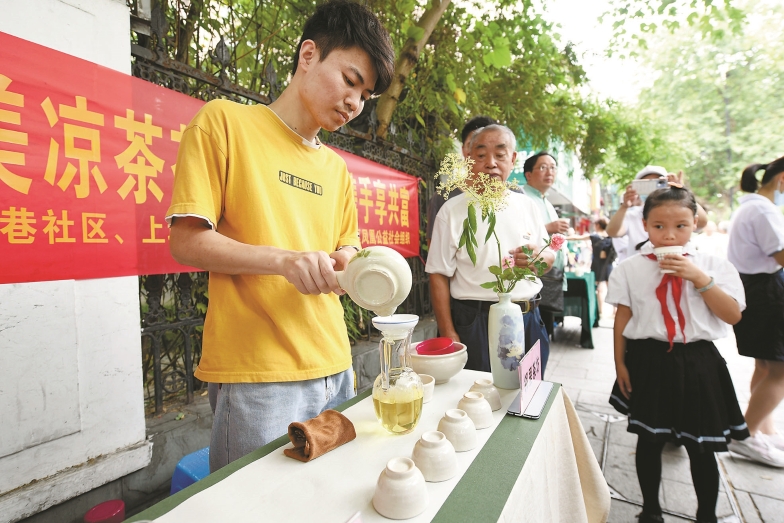 “邻里茶坊”负责人肖锥源接过话说:“茶坊所泡茶品将不断变化,分别展示铁观音、红茶、乌龙茶等不同的泡法。我们不仅要为居民送去夏日消暑的清凉,更要让他们品味到中国茶文化的博大精深。”