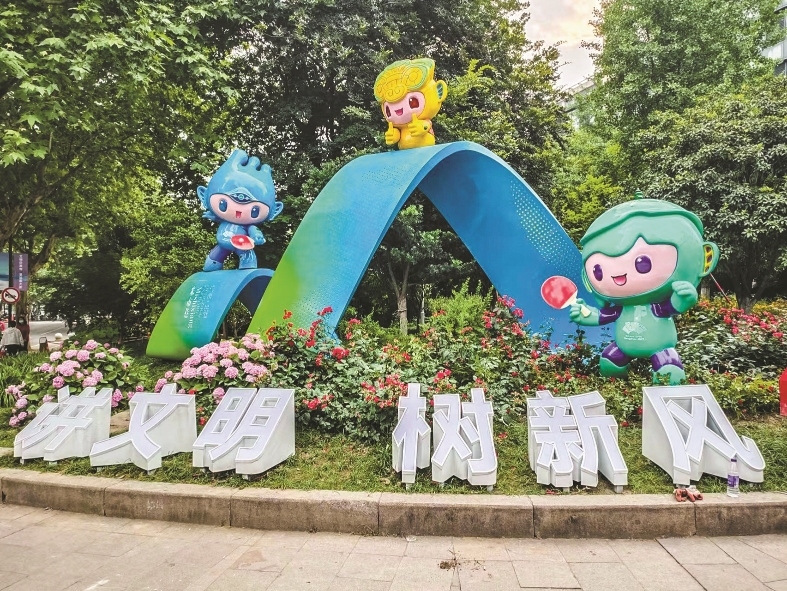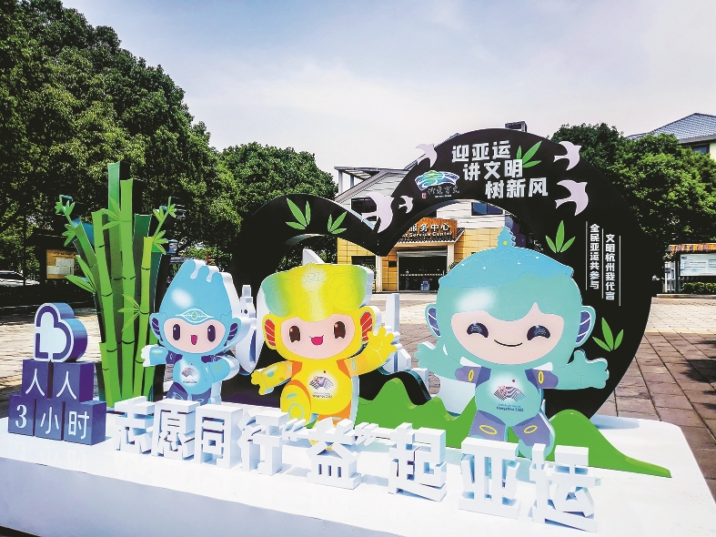 一城文明风,满目幸福景。在杭城街头巷尾,公益广告景观小品内容越来越丰富,以视觉艺术结合当地特色,分布在主次干道、广场、公园、景区景点等地,包括“社会主义核心价值观”“绿水青山就是金山银山”“文明亚运、精彩亚运”“宋韵文化”“讲文明、树新风”等主题,让文明风尚“悄然入人心”的同时,也成为路上最美的风景。