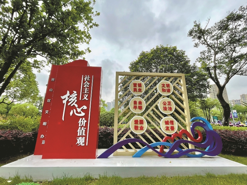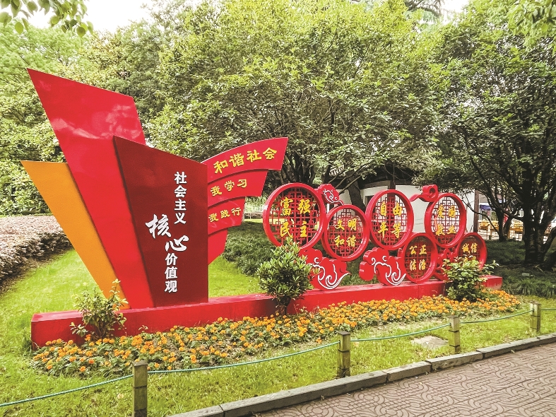 一城文明风,满目幸福景。在杭城街头巷尾,公益广告景观小品内容越来越丰富,以视觉艺术结合当地特色,分布在主次干道、广场、公园、景区景点等地,包括“社会主义核心价值观”“绿水青山就是金山银山”“文明亚运、精彩亚运”“宋韵文化”“讲文明、树新风”等主题,让文明风尚“悄然入人心”的同时,也成为路上最美的风景。