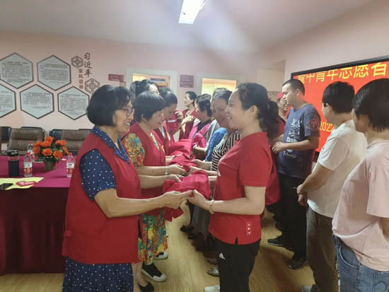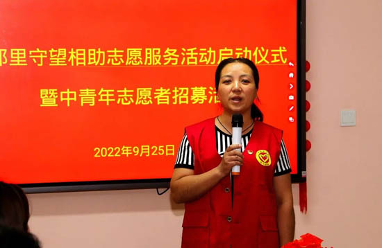 社区党委委员、妇联执委、三和交流室理事、百老惠艺术团团长任燕娜向志愿者们宣读了倡议书,倡议中青年们在加入志愿者队伍中发扬“奉献,友爱,互助,进步”的志愿精神,更好的实现自我价值。