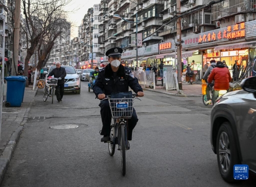 新春走基层丨骑自行车服务社区居民的民警老陈