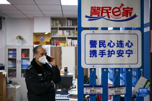 1月7日,陈炳云骑自行车从社区警务室返回宁园街派出所。