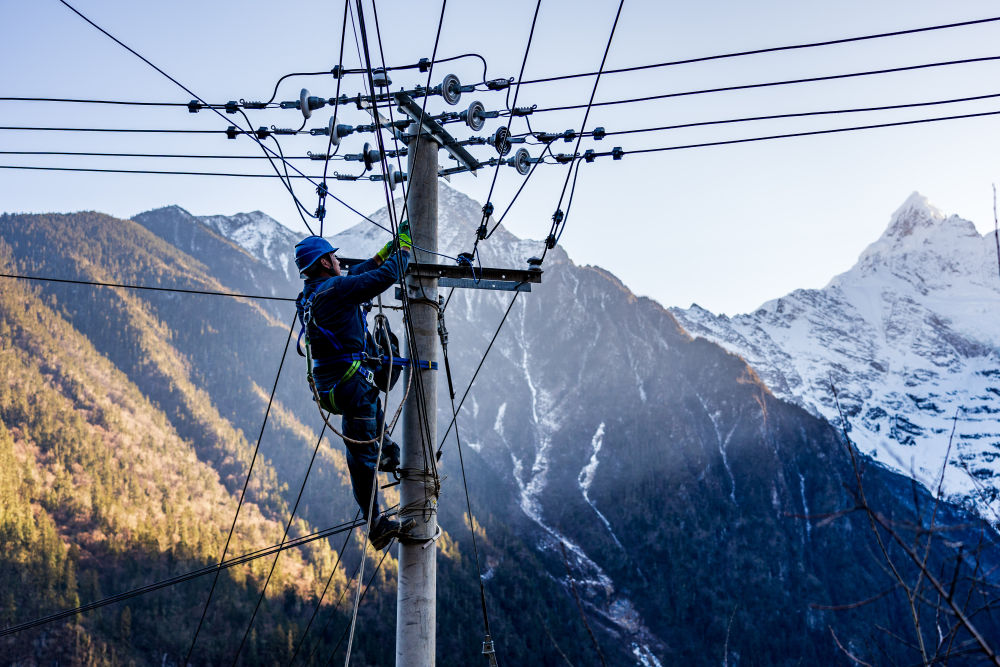 清晨,梅里雪山闪着金光,云南迪庆藏族自治州德钦县雨崩村在晨曦中苏醒,袅袅炊烟从村子里升起。远处的山上,头戴安全帽、身穿蓝色工装的电力工人旺登,和同事一道踩着积雪,徒步循着电线向雨崩村前进。