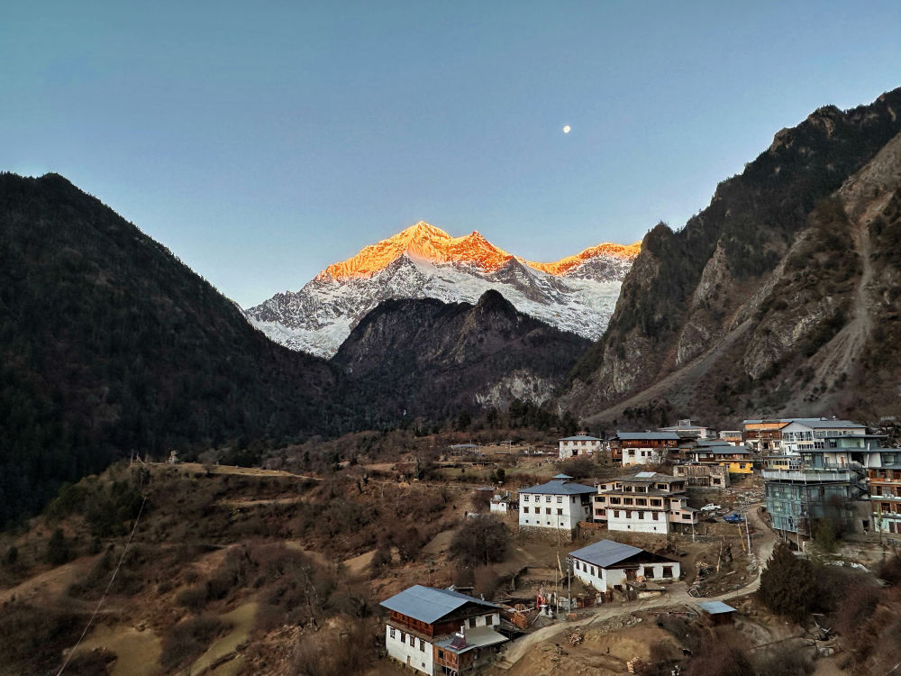 2023年1月10日拍摄的梅里雪山脚下的雨崩村。新华社记者王明玉 摄