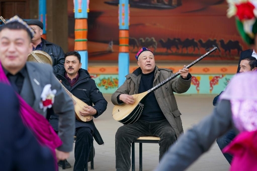 这段时间,村里的婚礼聚会多了,临近春节,各种庆祝活动也多了起来,大大小小的邀约排满了木卡姆艺人的时间表。苏来曼说,入冬以来,他已经接到20多次邀约,“给村民演出,他们喜欢,我也高兴!”