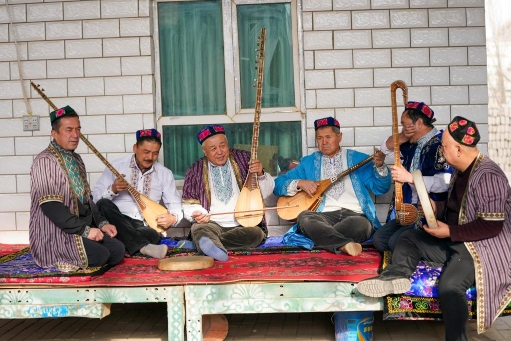 这些木卡姆艺人来自最基层的乡村。农忙时,他们是普通的农民;农闲时,他们是广受村民欢迎的民间艺术家,当音乐响起,仿佛换了模样。