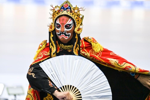 新华社成都7月31日电 30日,在成都大运会射击项目颁奖仪式开始前,场馆内突然响起动感音乐,只见两位身穿传统戏服的川剧变脸演员闪展腾挪入场来,扇子斗篷翻飞,“抹脸”“吹脸”“扯脸”变换娴熟,引得现场观众阵阵惊叹。