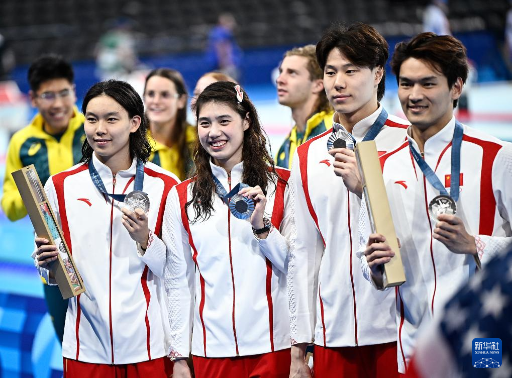 新华社巴黎8月3日电 3分37秒55!在3日晚进行的巴黎奥运会男女混合4X100米混合泳接力决赛中,中国队以打破亚洲纪录的成绩摘得银牌,和获得冠军的美国队只差了0.12秒。