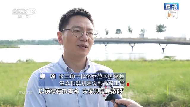 长三角一体化示范区执委会生态和规划建设部高级主管 施项:以前没有执委会,大家是散的。示范区成立以后,执委会发挥了很大的功能,把所有的标准进行统一,上下都能衔接起来。