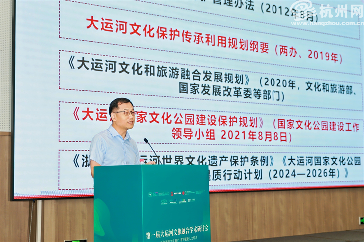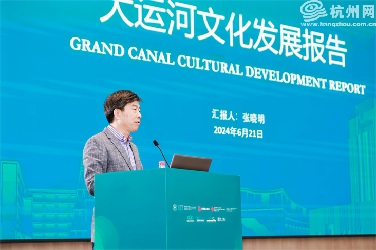 学术交流活动上,浙大城市学院国际文化旅游学院副教授张晓明代表《大运河文化发展报告》的编写组向大家介绍了报告的主要内容。