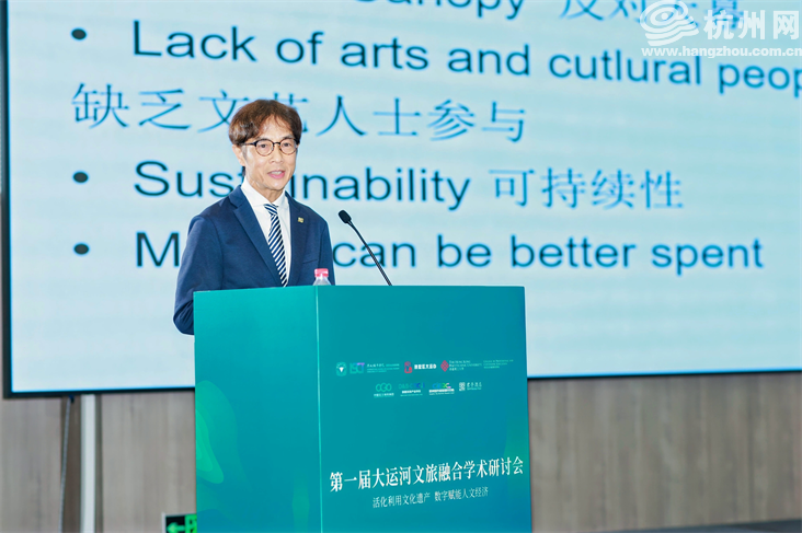 英国思克莱德大学荣休教授、浙大城市学院兼任教授Carson Jenkins带来题为《Canals in the United Kingdom: From Commercial to Leisure Usage》的分享,他讲述了英国运河的发展历程和旅游开发,并希望杭州能进一步挖掘大运河的文化潜能,考虑如何将运河文化和商业机遇联系起来,扩大大运河的影响力。