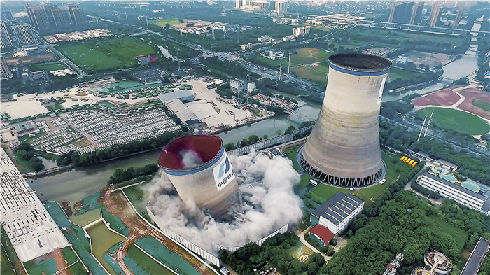 2021年12月19日,2号冷却塔爆破拆除,开创国内冷却塔原地坍塌爆破技术应用先河。