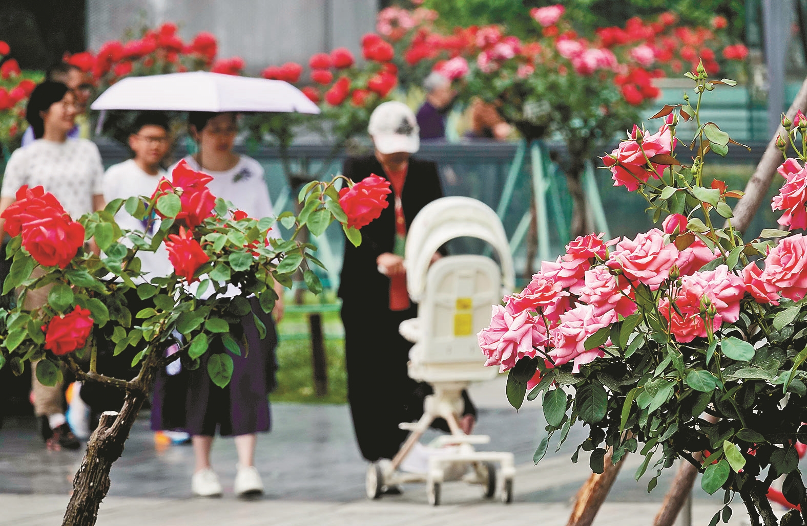 杭州日报讯 近日,钱江新城市民广场至城市阳台上的数百株树状月季竞相绽放,壮硕、密集、鲜艳的花朵格外大气华贵,在楼宇间平添亮丽春色,吸引市民游客驻足观赏。
