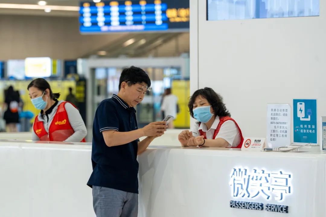 杭州东站是浙江省重要的交通门户,日均到发客流量位居全国前三。管委会坚持发挥门户窗口效应,广泛开展诚信宣传、普法教育、文明提示,弘扬社会主义核心价值观;与浙江大学等14所高校合作,优化升级“站小青”志愿服务品牌,使东站志愿服务向规范化、专业化更进一步;将宋韵文化、钱塘江文化与亚运元素融入站内空间,开展“文艺赋美”快闪活动,以美育人,以文化人。工作人员协助旅客出行“文艺赋美”快闪活动“站小青”为旅客提供服务在环境提升方面,管委会以“眼前一亮、席地而坐”为标准,推动绿色低碳理念深入人心。东站城市门厅获评全省首批"席地而坐城市客厅"优秀案例,西广场荣获“2021—2023年度杭州打造国内最清洁城市示范点”称号,实现了环境品质与文明风尚的同步提升。