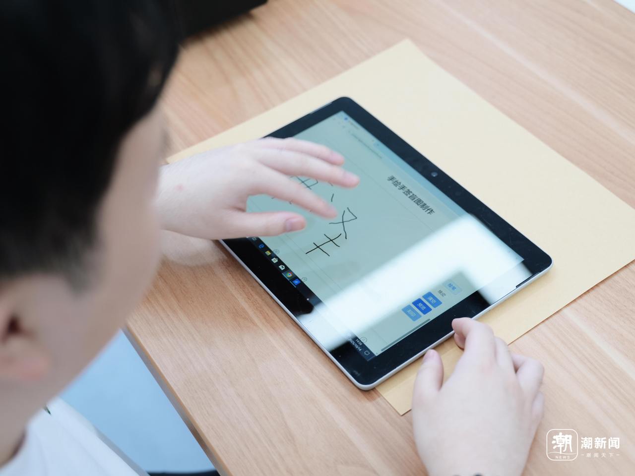 视障者在触控板上写下的名字能够被刻印下来亲手触摸到。记者 邹宸 摄
