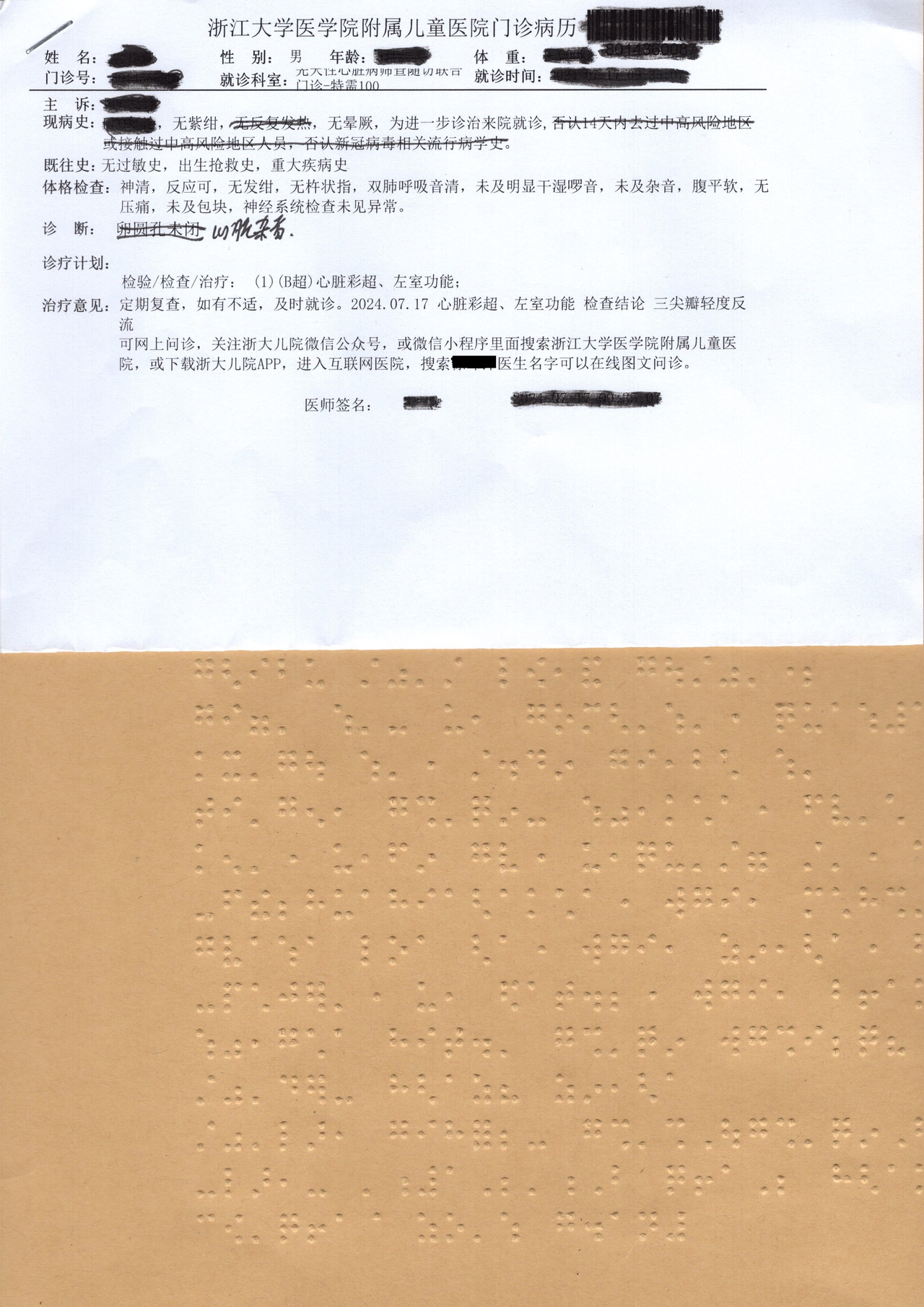 盲文病历翻译。受访者供图